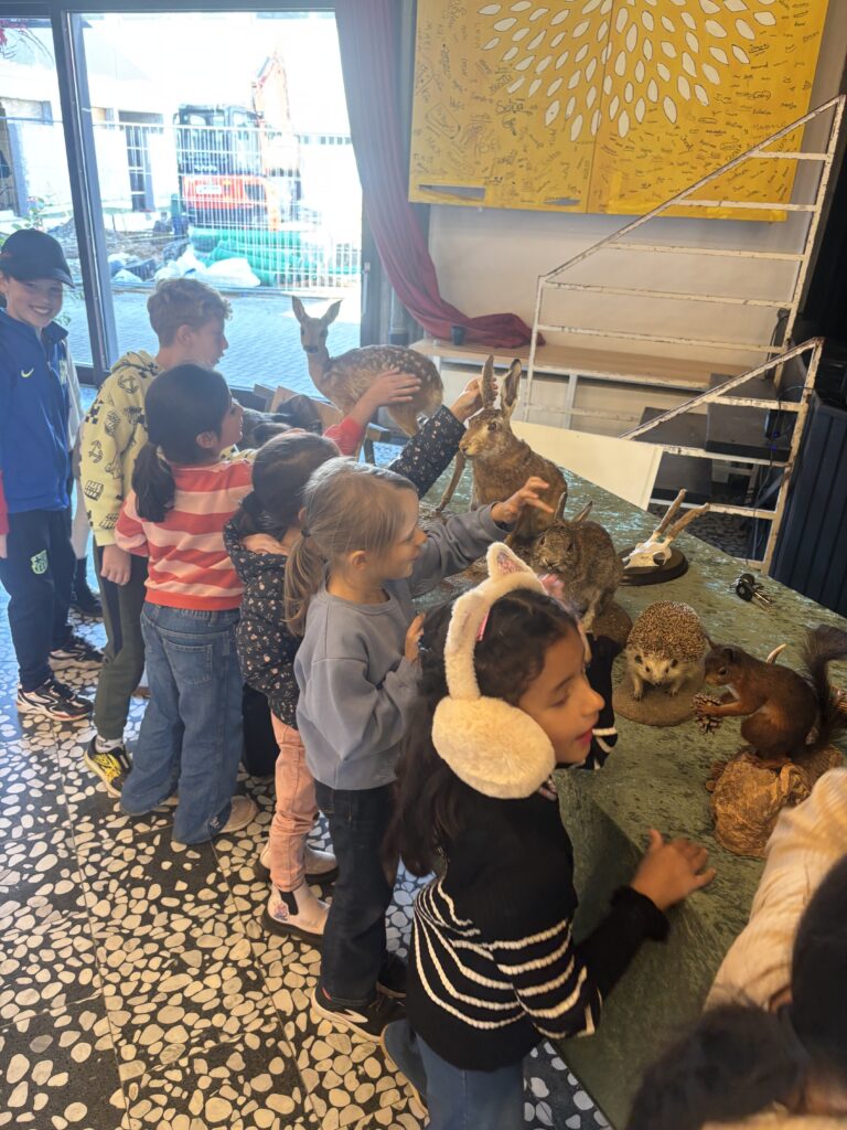 I    m Sachunterricht arbeiten die 2/3er aktuell zum Thema Wald und lernen verschiedene Bäume , Tiere & Pilze des Waldes kennen. Gesammelt wird alles in einem Lapbook. Außerdem gab es Besuch von der „Rollenden Waldschule“ – hier gab es Vieles zu Entdecken, Spannendes zum Zuhören & auch einige Modelle zum Anfassen.